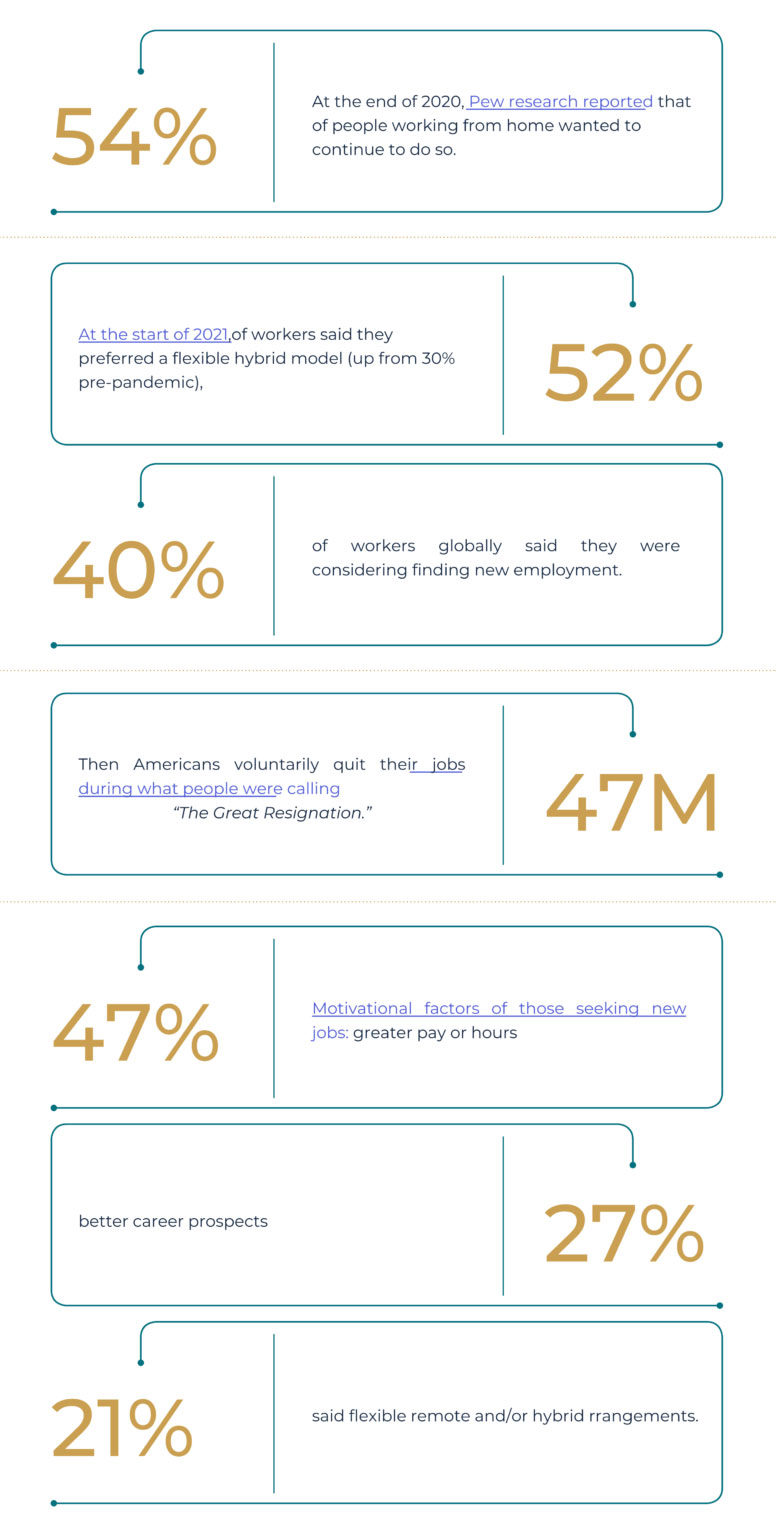 While most people would like to continue working from home, or at least have some flexibility, managers and leadership are still undecided. However, most experts do agree that hybrid models are here to stay, and many leaders and managers expect to be fully remote in the near future.