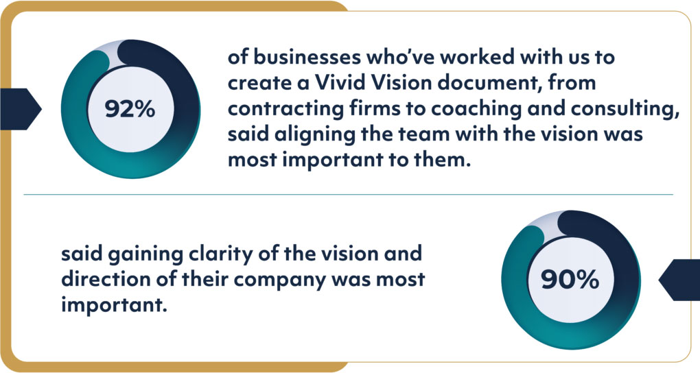 92% of businesses who’ve worked with us to create a Vivid Vision document, from contracting firms to coaching and consulting, said aligning the team with the vision was most important to them.