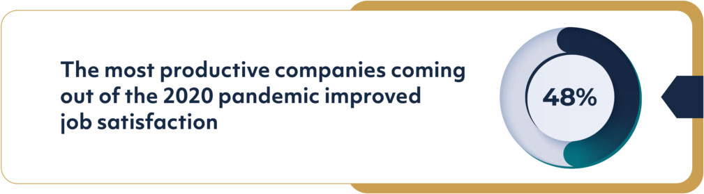 McKinsey reported that while millions of people have quit their jobs in the last few years in what experts have called the Great Resignation, the most productive companies coming out of the 2020 pandemic improved job satisfaction by 48%.